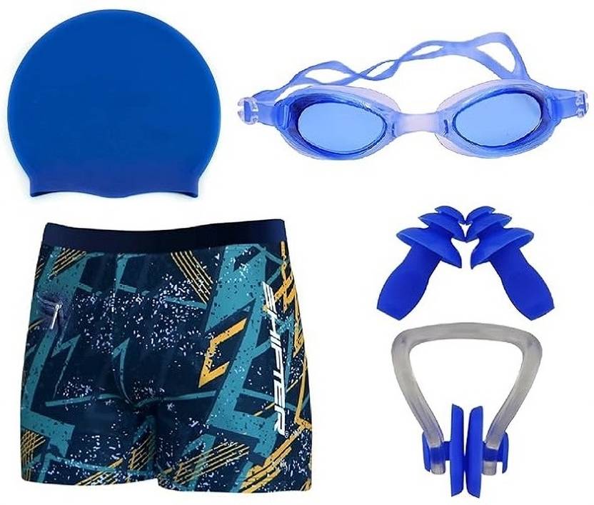 Swimming kit For Men With Swimming Costume For Men Cap Goggles Ear Plug