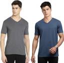 JOCKEY Pack of 2 Men Solid V Neck Pure Cotton Grey, Dark Blue T-Shirt