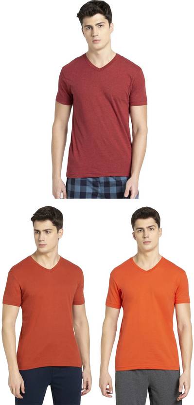 Pack of 3 Men Solid V Neck Pure Cotton Multicolor T-Shirt