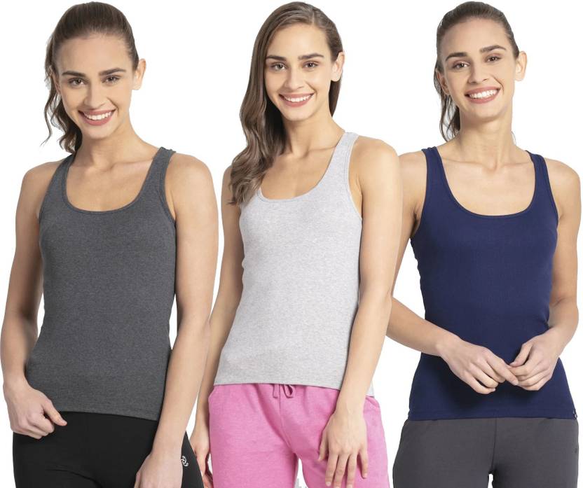 Jockey Multicolor348 Racer Back Tank Top - Pack of 3 (#1467). Fabric Details : 100% cotton. Super Combed Cotton Rib fabric. Modern fit. Racerback styling. Authentic Jockey logo tab label. To be worn as loungewear, leisurewear and activewear - for all purpose use.