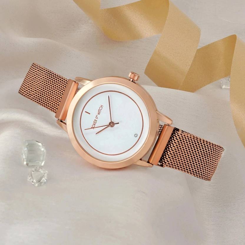 Joker & Witch Eclipse 34mm White Dial 16mm Rose Gold Steel Mesh Strap for Women