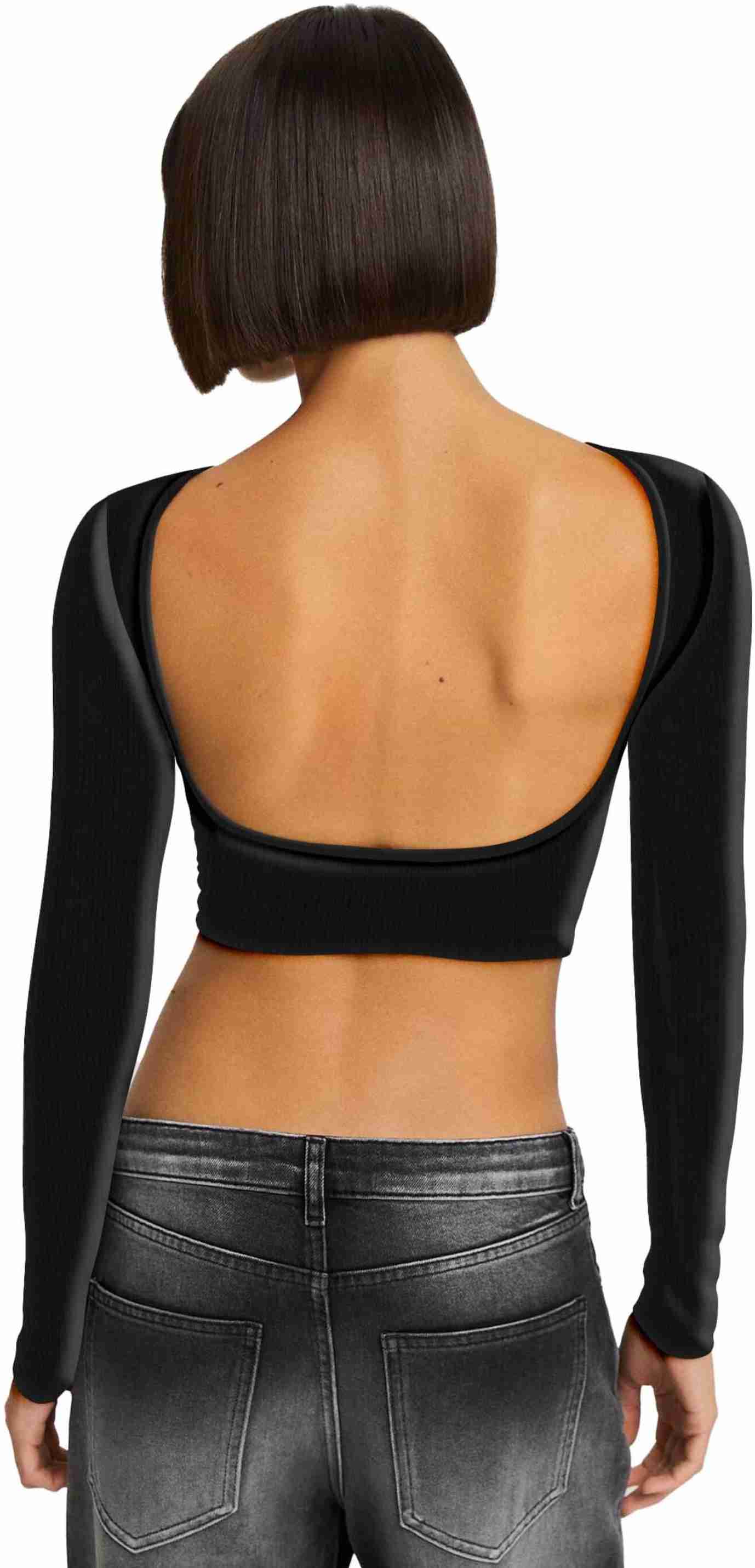 Casual Regular Sleeves Solid Women Black Top