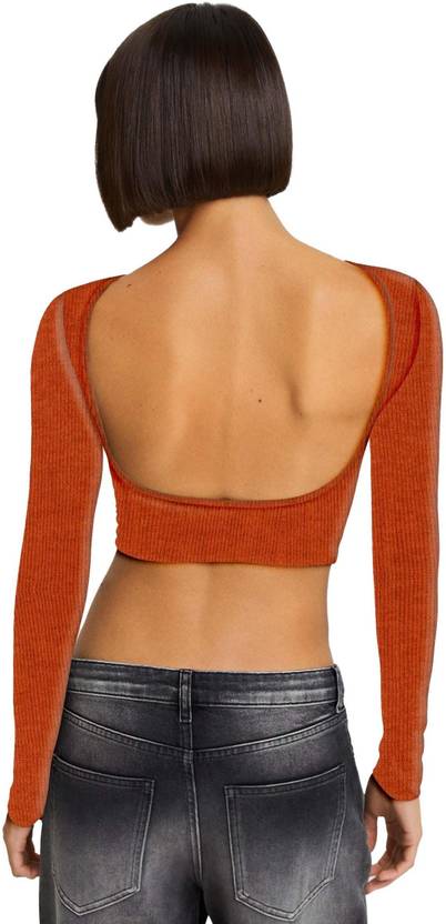 jovo Casual Regular Sleeves Solid Women Orange Top