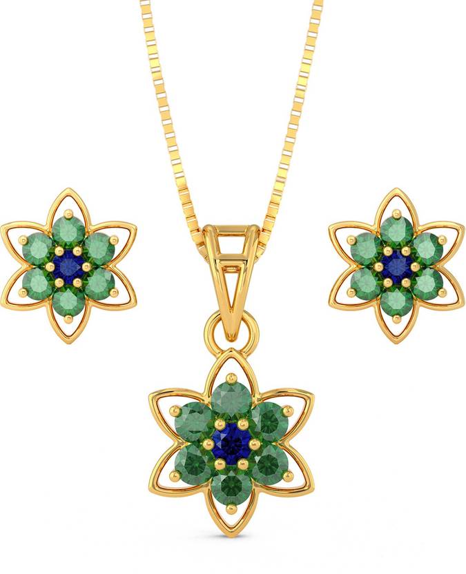 Joyalukkas Yellow Gold Florel Design 22kt Emerald, Sapphire Earring & Pendant Set