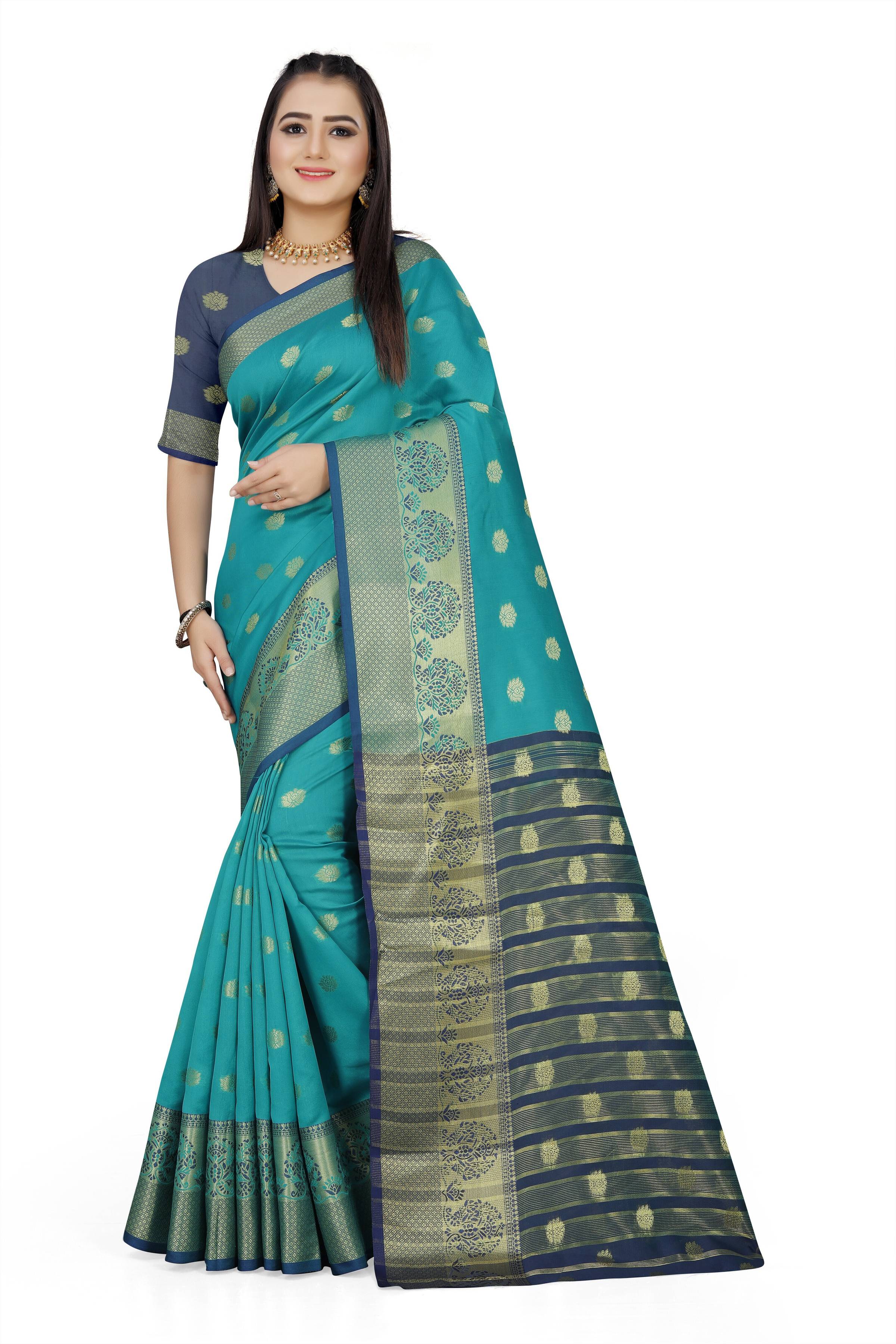 JS Clothing Mart Woven Banarasi Art Silk Saree (Light Green)