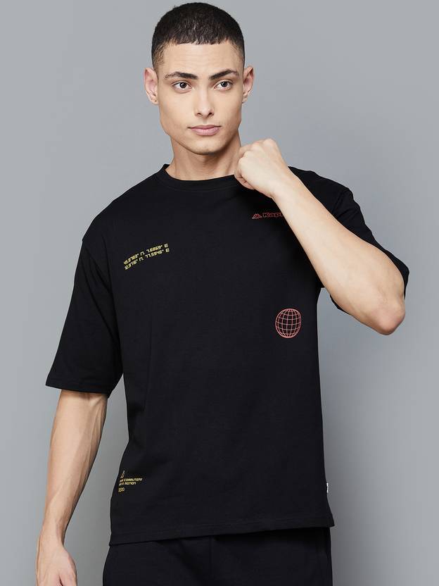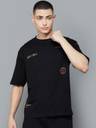 Men Printed Round Neck Cotton Blend Black T-Shirt