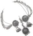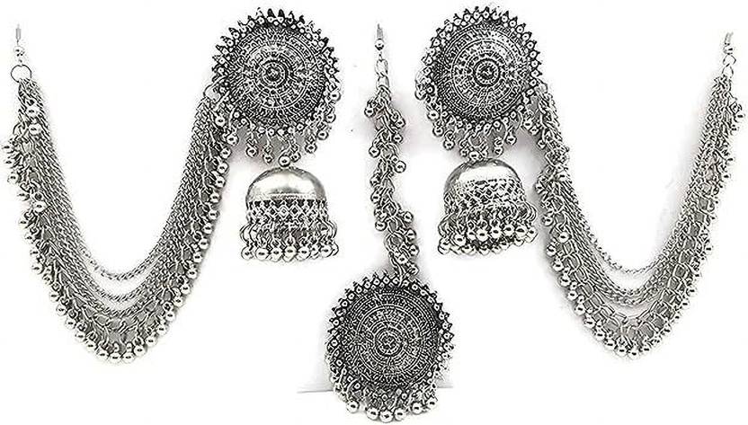 KaranPartyShop Combo of Stylish Jhumka Earrings & Maang Tikka for Women & Girls(Silver Color) | German Silver Earring Set