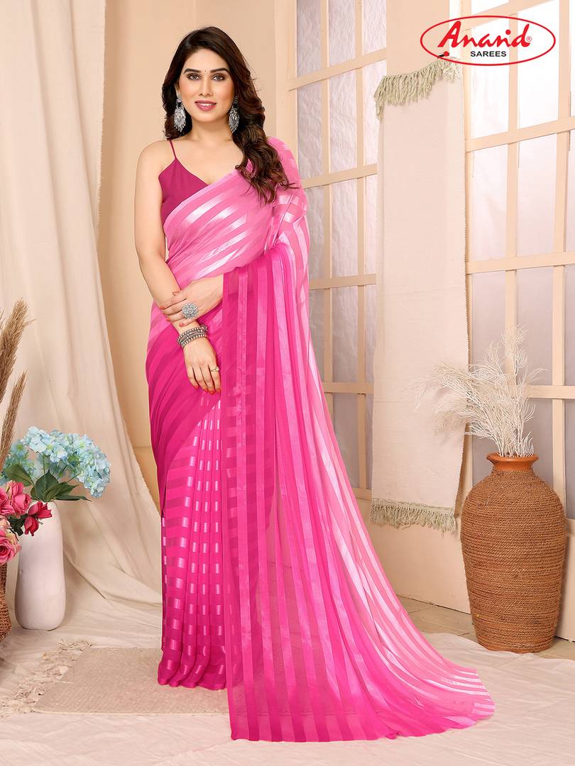 kashvi sarees एम्बेलिश्ड, धारीदार, ओम्ब्रे बॉलीवुड साटन साड़ी (गुलाबी)