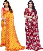 Daily Wear Printed Saree, 5.25 Meters Of Saree Length, Casual Wear Regular Saree With Un-Stitched Blouse Piece, 0.75 Meters Of Blouse Piece Length, Faux Georgette Pack Of 2 Sarees
