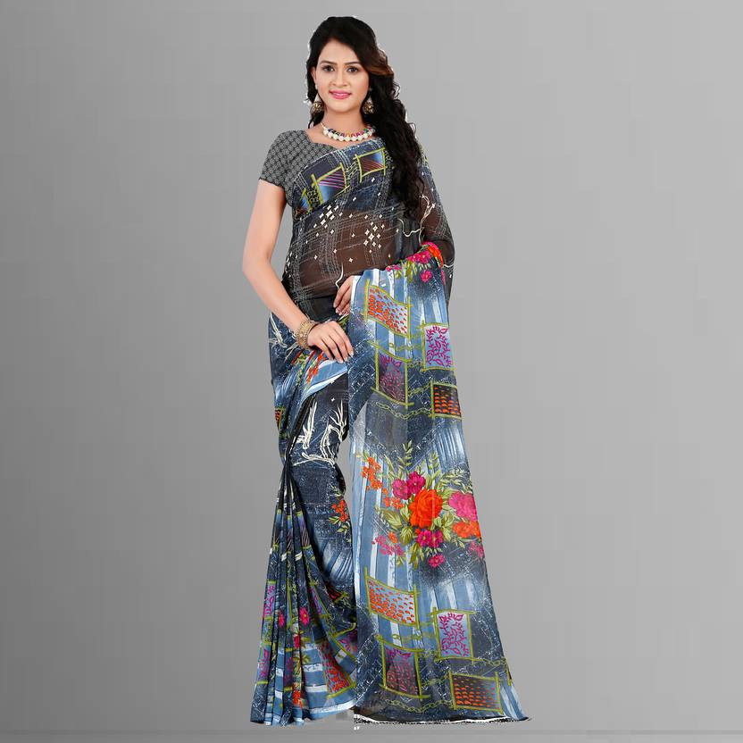 kashvi sarees Printed Daily Wear Georgette Saree (Blue, Grey)