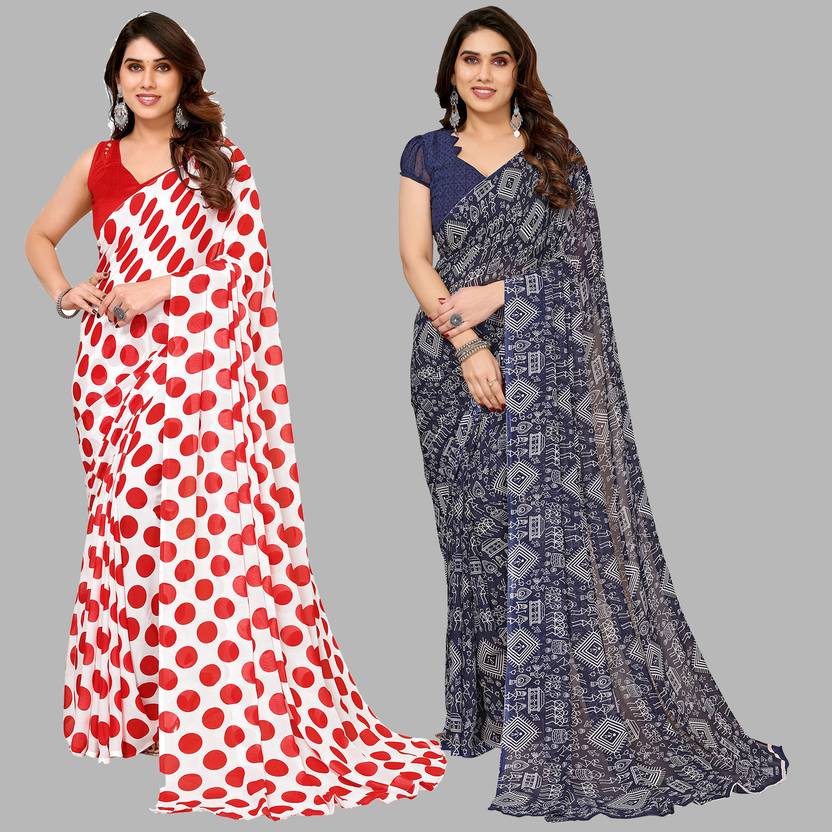 Daily Wear Printed Saree, 5.25 Meters Of Saree Length, Casual Wear Regular Saree With Un-Stitched Blouse Piece, 0.75 Meters Of Blouse Piece Length, Faux Georgette Pack Of 2 Sarees