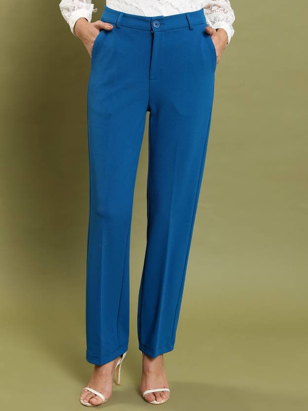 केच महिलाओं के लिए नीला रेगुलर फ़िट ट्राउज़र्स
