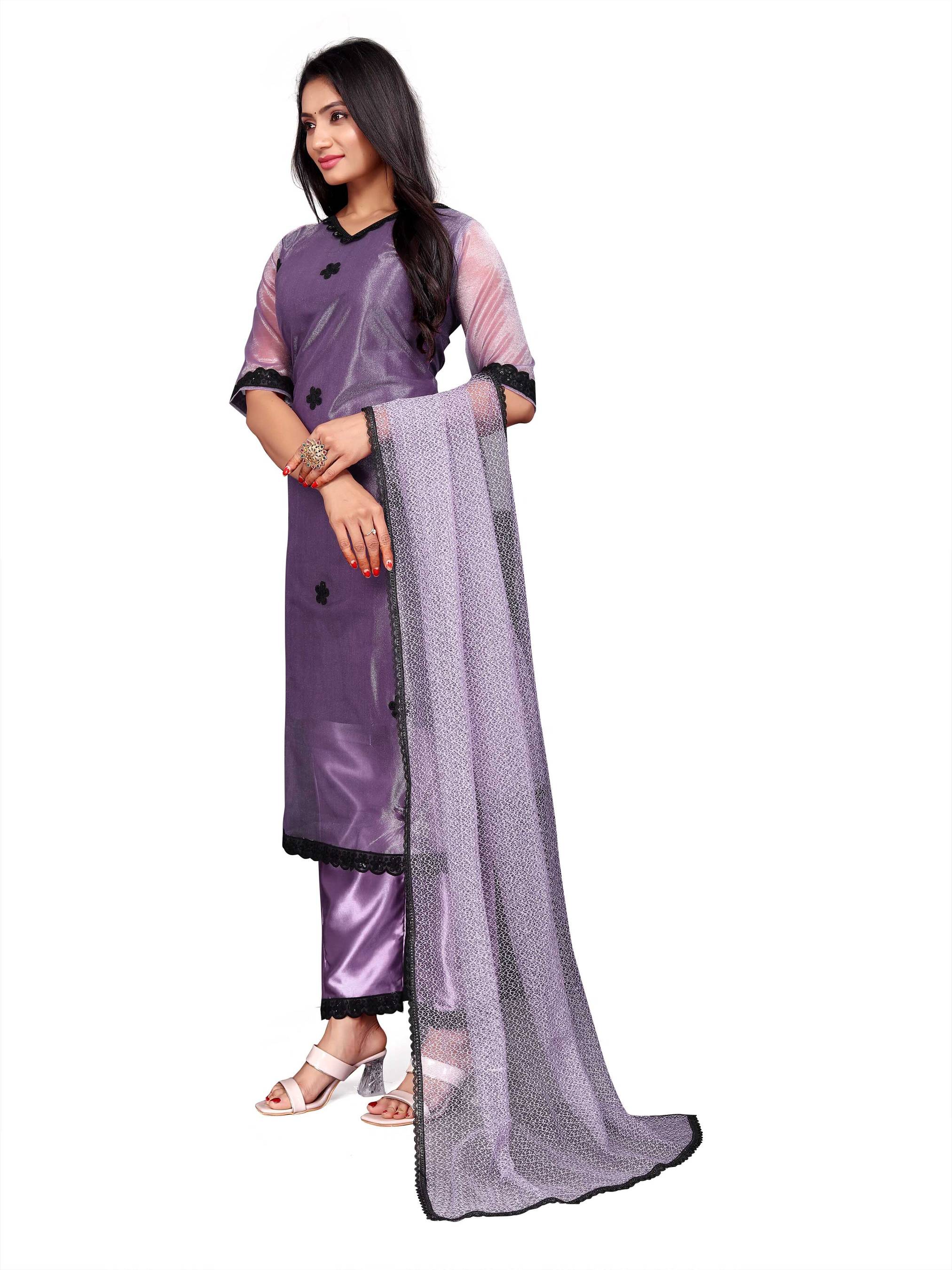 Women Satin Kurta Pant Dupatta Set