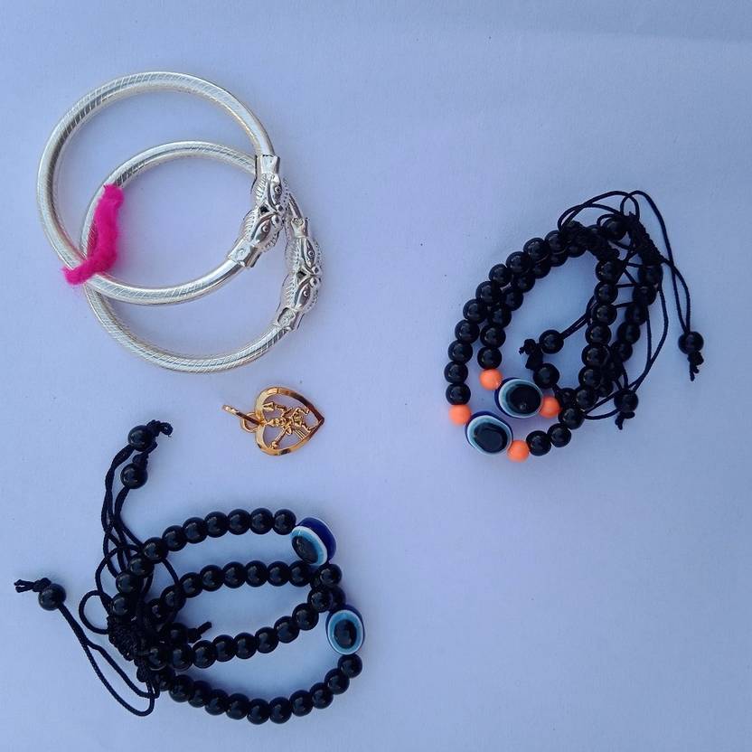 silver kada New born baby boy girl kid child Black Beads (Pack of 7pc