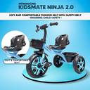 Kidsmate Ninja 2.0 Plug N Play Tricycle Durable with Storage Basket, Safe & Secure, 10 T (एक गति, नीला)