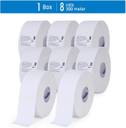 Non-perforated, 2-ply, unscented white jumbo roll toilet paper is efficient for businesses, 8 rolls per case, 300 meter per roll, 2400 meter per case; small case size for convenient commercial toilet paper storage