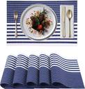 Elevate your dining experience with the KitchEase Woven PVC Vinyl Dining Table Placemats. This Pack of 5 placemats in a sophisticated white & blue color combination adds a modern and elegant touch to any dining room or restaurant table. Crafted from high-quality woven PVC vinyl, these placemats are designed for style, durability, and practicality.