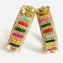 Add a burst of color and charm to your ensemble with the "Floral Fiesta" bangles set. This delightful pair features a dazzling array of colorful crystals arranged in a striped pattern, accented by a central, crystal-adorned floral motif.