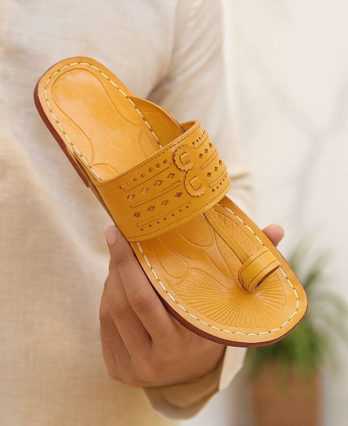 Step into timeless tradition and unmatched comfort with our Kolhapuri chappal for men – a true blend of heritage, craftsmanship, and everyday style. Perfectly handcrafted, these chappals reflect the rich culture of Maharashtra, where the art of shoemaking has been passed down for generations. Whether you’re dressing up for a festive celebration, a casual outing, or pairing them with your ethnic attire, our men Kolhapuri chappal collection is designed to give you both authenticity and elegance. Our Kolhapuri leather chappal men collection is made using premium, 100% genuine leather that not only adds to the durability but also ensures supreme comfort with every step. Unlike mass-produced footwear, these chappals are carefully cut, stitched, and finished by skilled artisans who have mastered the traditional techniques. Every pair you wear is more than just footwear – it’s a piece of living history. For men who love versatility in their wardrobe, our range of Kolhapuri sandals for men works as a stylish match for both western and ethnic outfits. Pair them with jeans and a kurta for a laid-back festive look, or style them with trousers for a more contemporary twist. Their earthy tones and natural texture bring an effortless charm that never goes out of fashion. When you choose our traditional Kolhapuri chappal men collection, you aren’t just choosing footwear – you are choosing authenticity. Each pair reflects the values of sustainability, as the materials used are natural and eco-friendly. The tanning process ensures that the leather stays soft yet strong, giving your feet the comfort they deserve while maintaining long-lasting durability. Our authentic Kolhapuri chappal for men is known for its unique design – the classic T-strap, fine braids, and intricate detailing that instantly sets it apart from ordinary footwear. These details are what make Kolhapuris an iconic choice for generations of men across India. Whether you’re attending a wedding, a festival, or simply stepping out for a casual evening, these chappals will never let you down. If you’re someone who values simplicity and functionality, our leather chappal men styles are your go-to choice. Designed for everyday use, they offer unmatched ease of wear. Soft cushioning ensures your feet remain relaxed even after long hours of use, while the sturdy sole promises longevity. This makes them a great addition not just for special occasions but also for regular wear. Looking for comfortable yet stylish slippers for men? Our Kolhapuris double up as the perfect slipper alternative – breathable, lightweight, and easy to slip on. Unlike synthetic slippers, these handcrafted options offer both elegance and cultural significance, making them perfect for modern men who like their footwear practical yet stylish. Each pair of our handmade leather chappals is a masterpiece that carries the touch of an artisan’s hand. The natural grains of the leather and the unique hand-stitched patterns make every piece one-of-a-kind. You won’t just be wearing footwear; you’ll be wearing art, crafted with patience and precision. Our collection of ethnic chappal for men is designed to complement your traditional attire during weddings, pujas, and festivals. Pair them with sherwanis, kurtas, or dhotis, and you’ll instantly elevate your ethnic look. They are also versatile enough to complement semi-formal wear, giving you the best of both worlds. In a world dominated by machine-made footwear, owning a pair of Kolhapuris means standing out with style, tradition, and originality. Durable, stylish, and comfortable, they are more than just footwear – they are a statement of heritage. So why wait? Explore our wide range of Kolhapuri chappals for men today and step into timeless elegance.