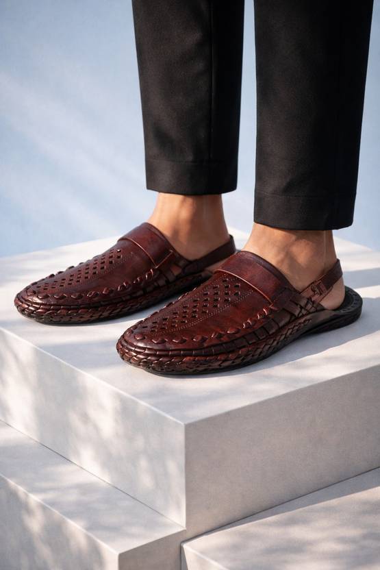 Every pair of Kolhapuri chappal for men is meticulously handcrafted using pure, high-quality leather sourced from ethical tanneries. The intricate braiding, hand-stitching, and natural polish reflect the dedication of artisans who have perfected this craft over generations.