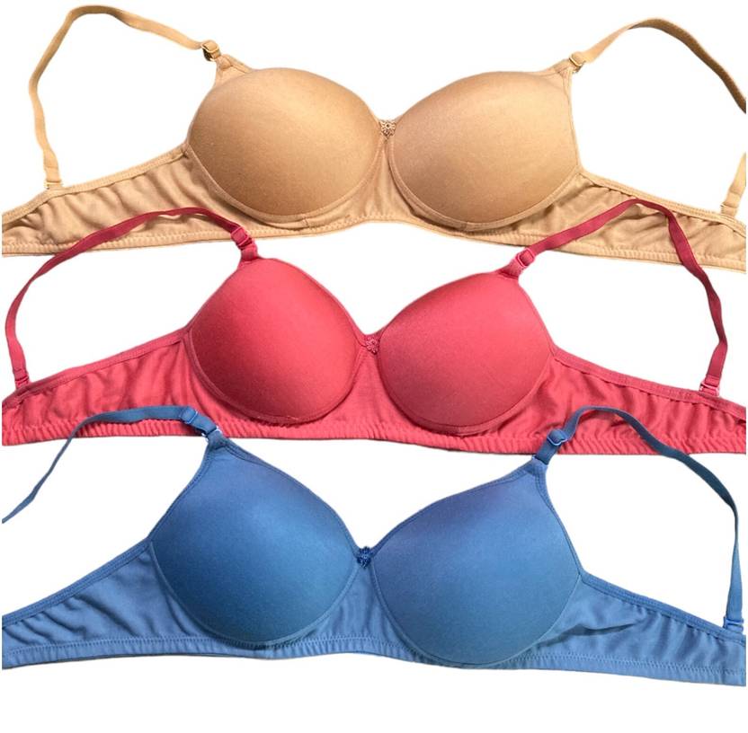 Kongshw lightly Padded Women's Seamless Bra - Set of 12 Women Everyday Lightly Padded Bra (Brown, Pink, Blue)