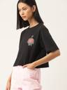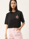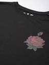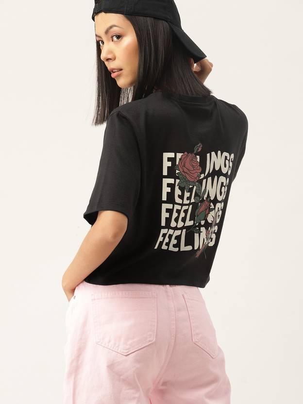 कूक न कीच महिलाओं के लिए गोल गला फ्लोरल प्रिंट, टाइपोग्राफी काला टी-शर्ट