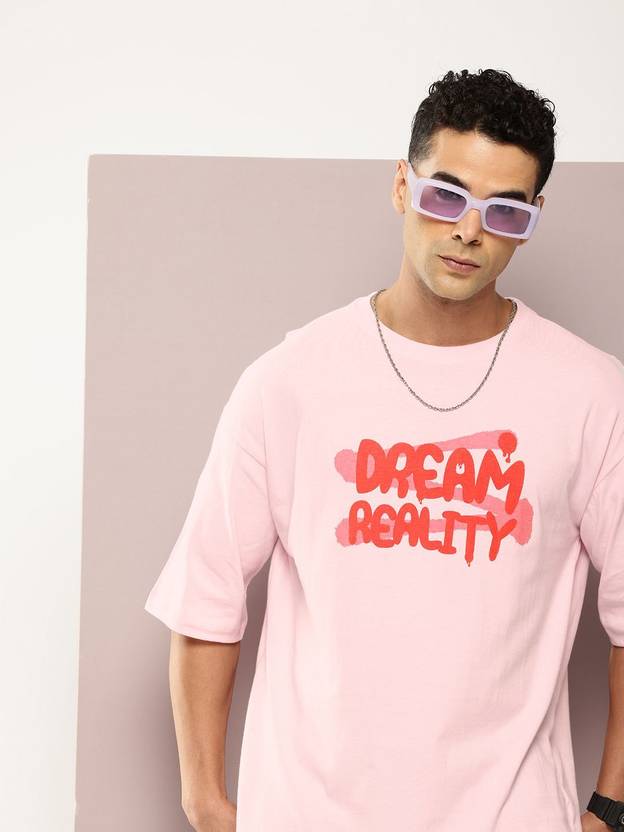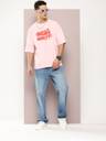 पुरुषों के लिए प्रिंटेड गोल गला गुलाबी टी-शर्ट