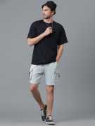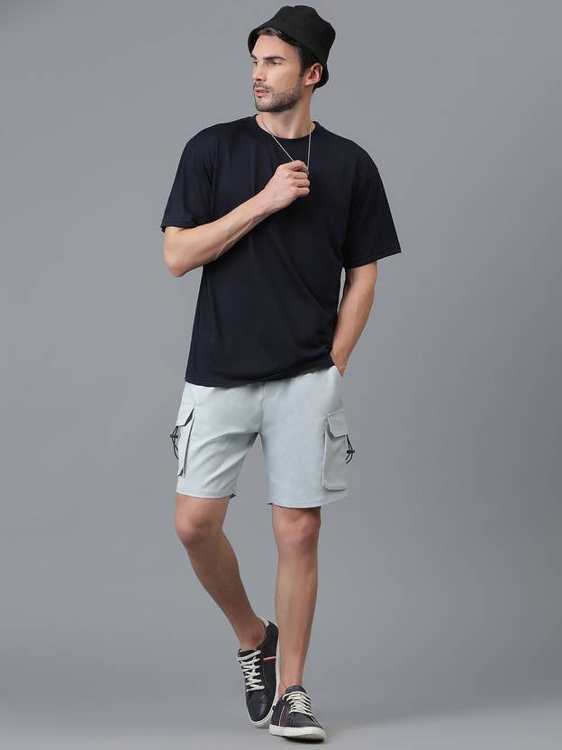 KOTTY पुरुषों के लिए सॉलिड हल्का नीला कार्गो शॉर्ट्स