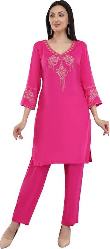 Rayon Fabric With Thread Machine Work Women's | V-Neck Kurti Pant Set