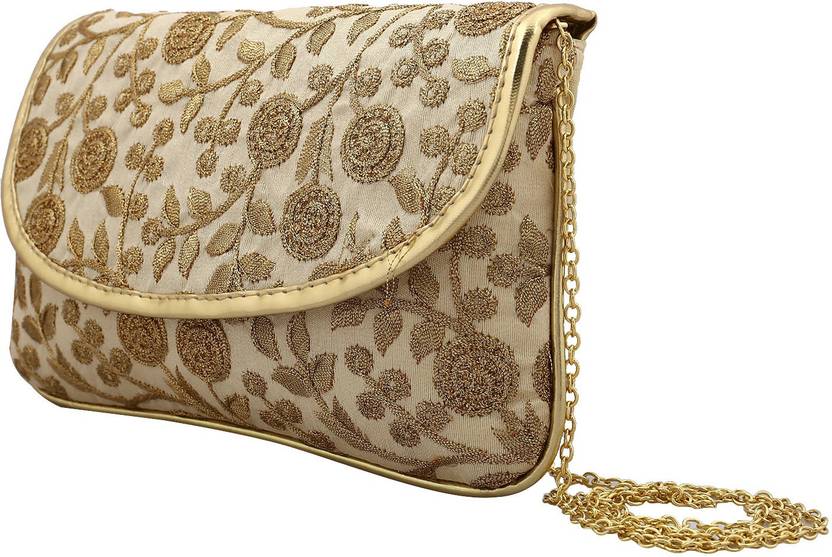 Handcrafted Embroidered Clutch Women Handbag (Gold) -CTKTC3976