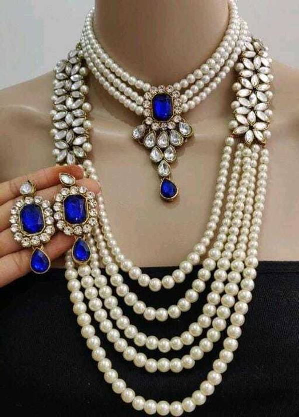 JewelShadi Alloy Gold-plated Blue Jewel Set (Pack of 1)