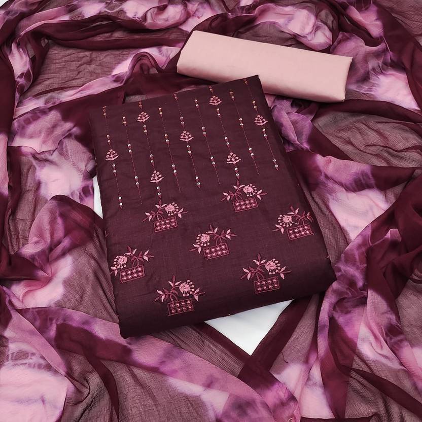 Color : Purple, Introducing our stunning Cotton fabric Embroidery Work Un-Stitched Dress Material, a perfect choice for those who appreciate the artistry and elegance of embroidery. This dress material is designed to give you the freedom to create a personalized outfit that reflects your unique style and personality.Made from high-quality cotton fabric that ensures a comfortable.Top Length is 2 Meter (50 Inch Panna), Bottom Length is 2 Meter (Panna 57 Inch) With 2.20 Meter Najmim Saboori Print Dupatta. This dress material comes in an un-stitched form, allowing you to customize it according to your preferences.Make a style statement with our Cotton Embroidery Work Un-Stitched Dress Material and embrace the elegance and artistry of embroidery in your attire.