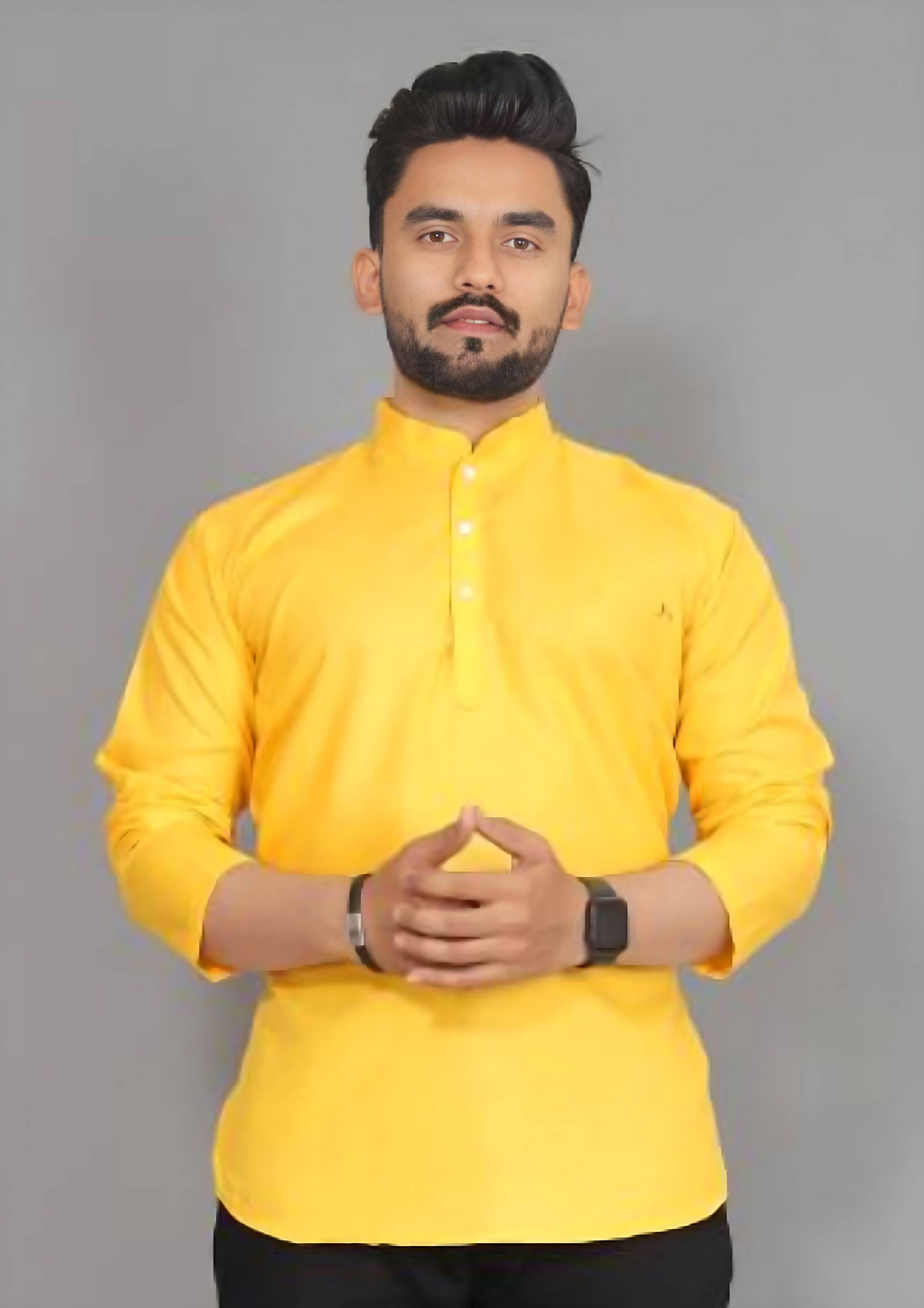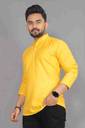 Lyolo Men Solid Cotton Blend Straight Kurta (Yellow)