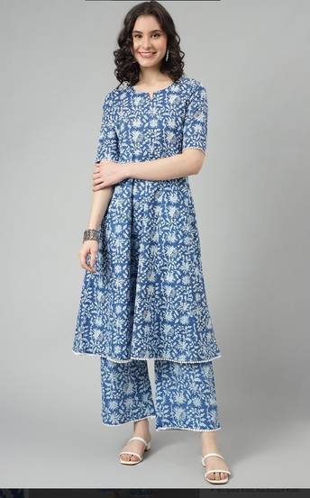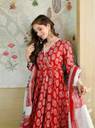 लाली क्रिएशन Indi प्रिंटेड अनारकली कुर्ता, बॉटम और दुपट्टा सेट (स्टिच्ड)