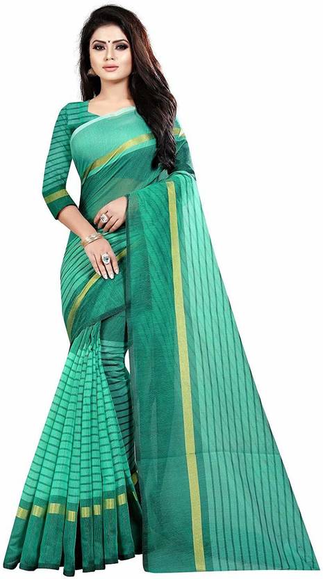 धारीदार गुंटूर कॉटन सिल्क साड़ी (हरा)