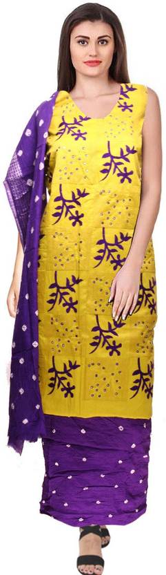 Highly comfortable Bandhani Bandhej with Traditional Embroidered Cotton Silk Dress Material Set. Beautiful elegant textures and selective colour combination add to the beauty of person wearing. The elegance of this dress would surely make you look special. So wear it for party, office or regular.The full length fabric fitting XL Size and specially the full length cotton dupatta will add to the richness. The softness of this dress would make you feel very comfortable in all seasons. And we are sure you'll admire the elegance and comfort of this dress material