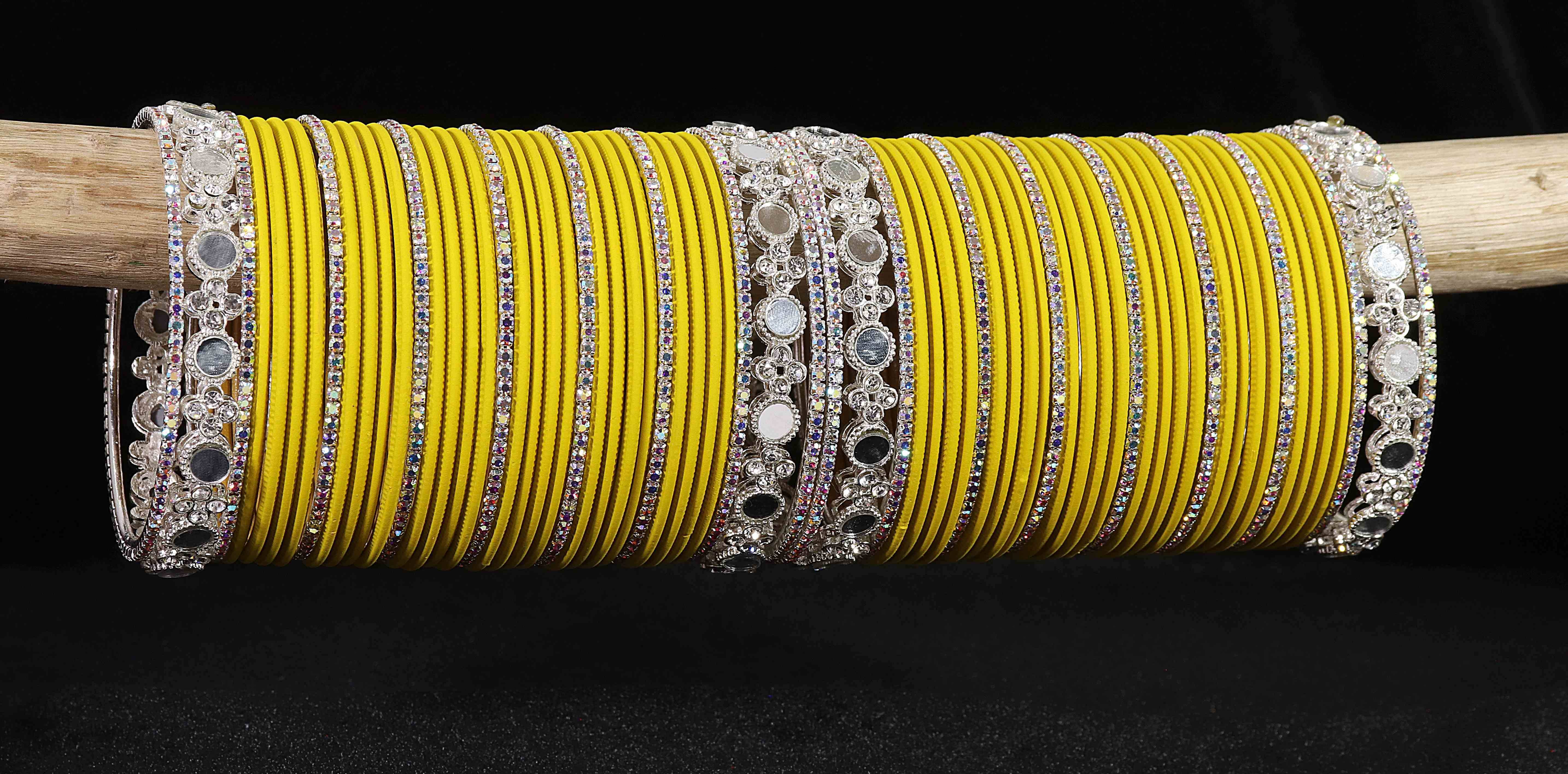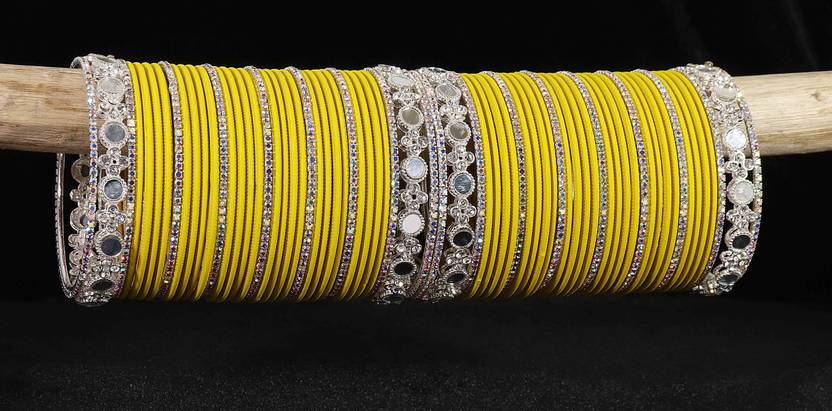 LAVAZZA Stylish Metal Mirror Work White Stone Bangles Set For Women & Girls | Diamond Bangles | Metal Bangles | Chudi Set | White Stone Bridal Chuda Set | Trendy AD Chooda Bangles