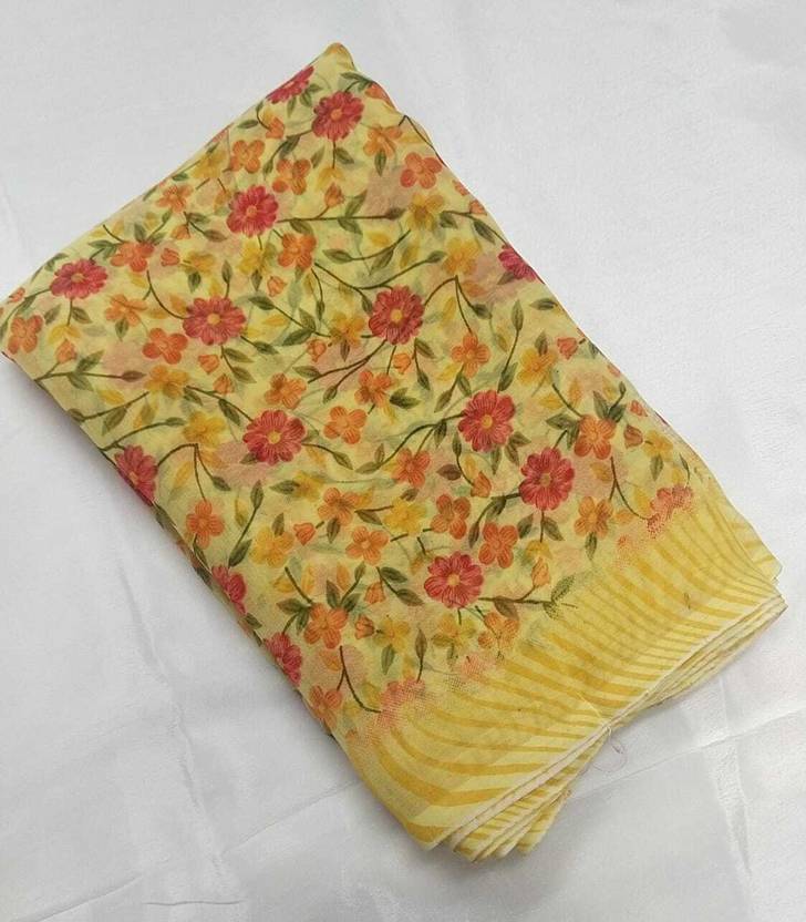 Printed Daily Wear Georgette Saree (Yellow)