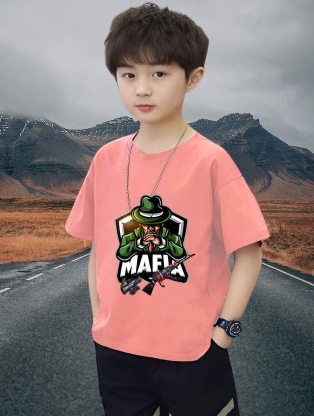 लेकोवार लड़के Printed Polyester Regular टी शर्ट (गुलाबी, पैक ऑफ 1)