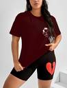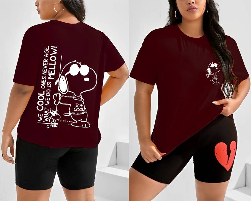 Women Printed Round Neck Pure Cotton Maroon T-Shirt