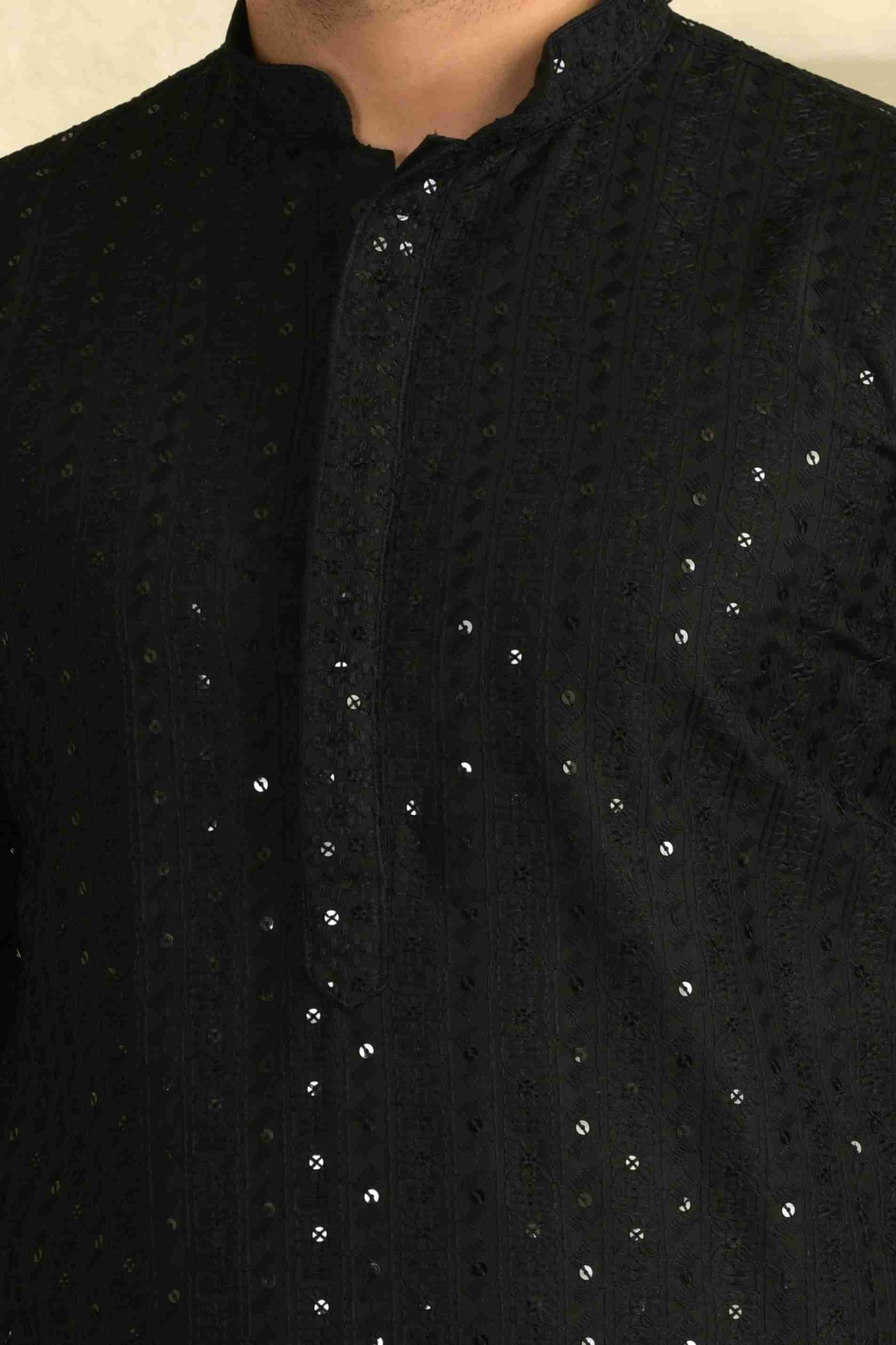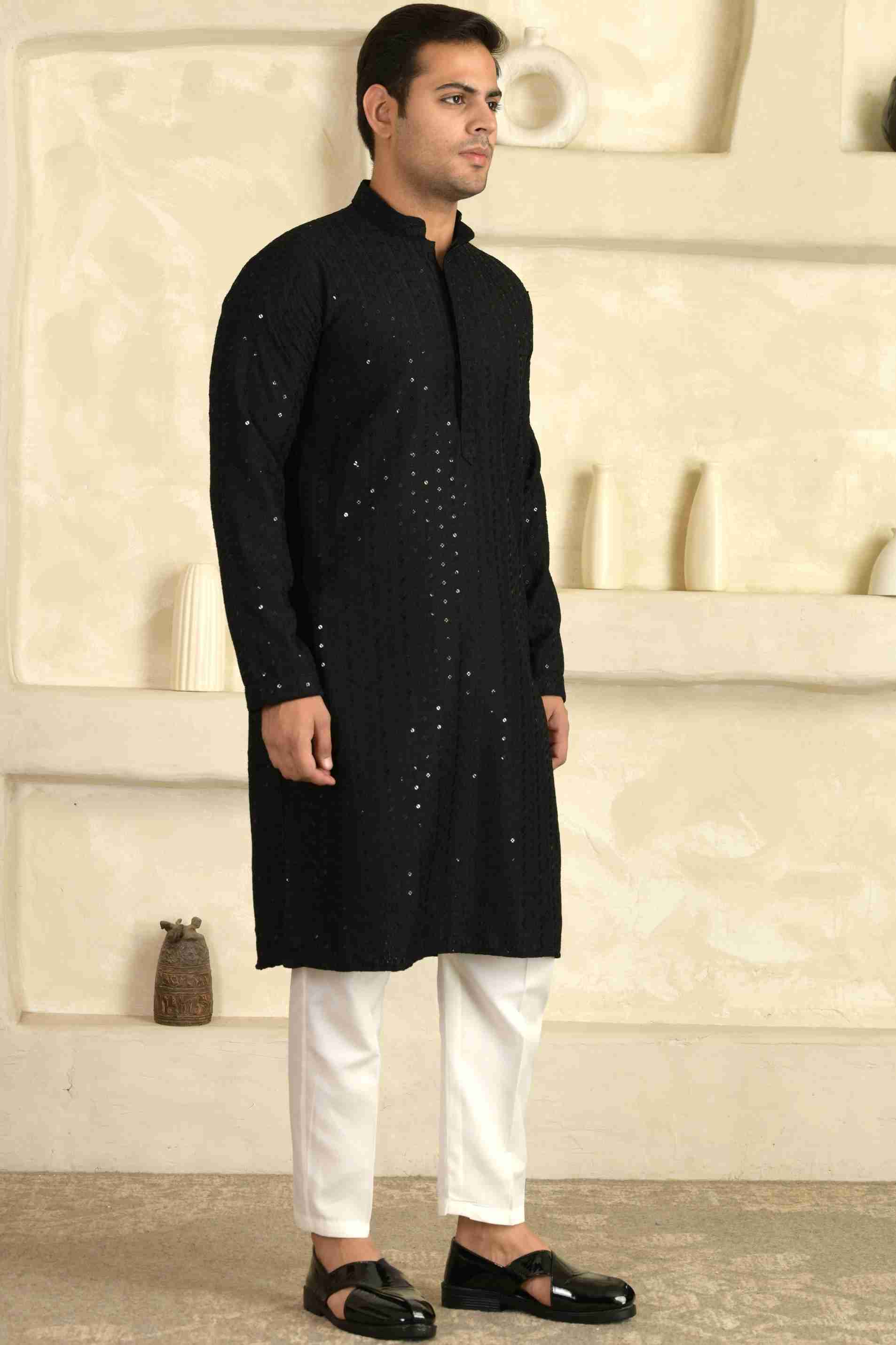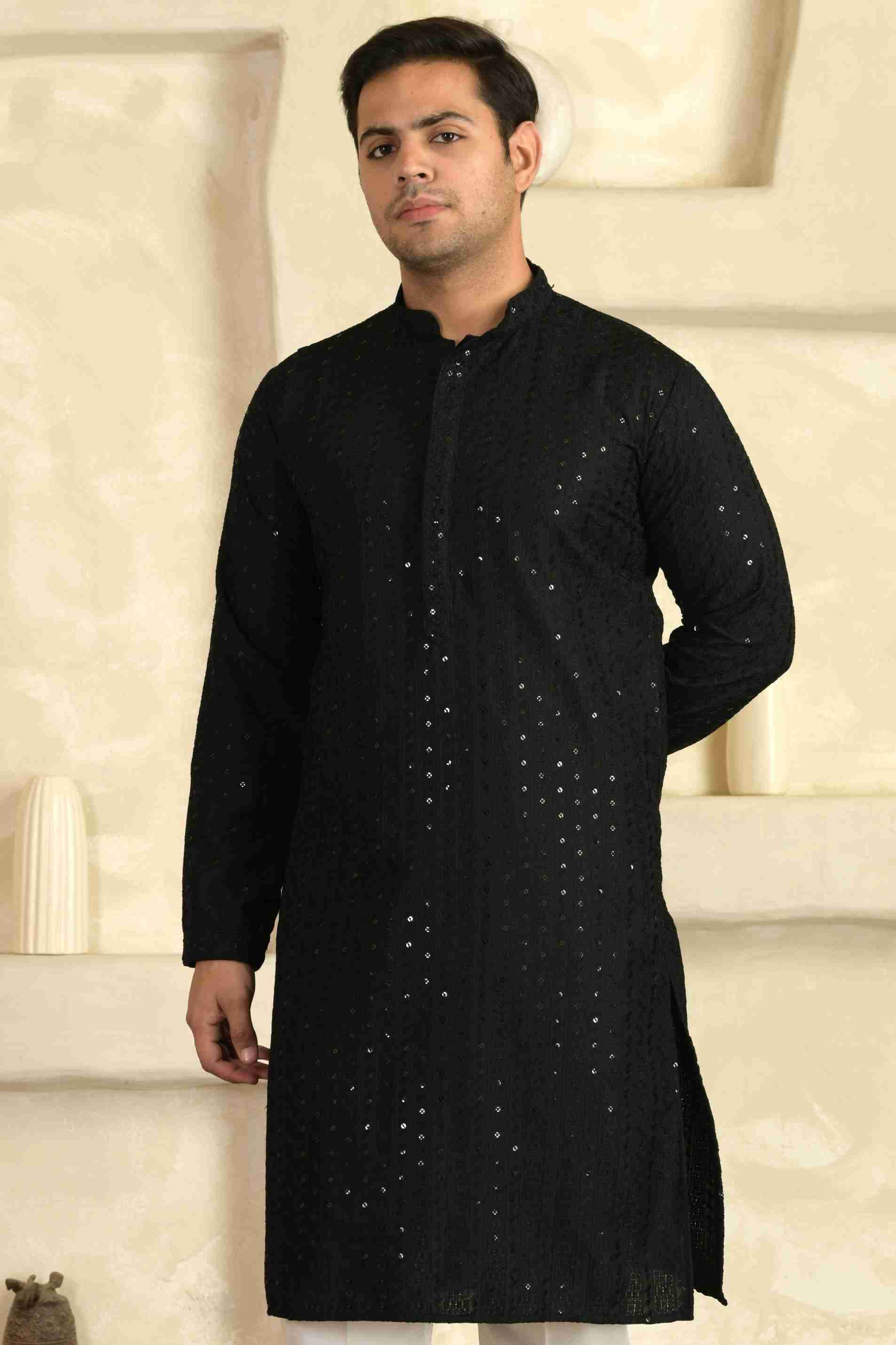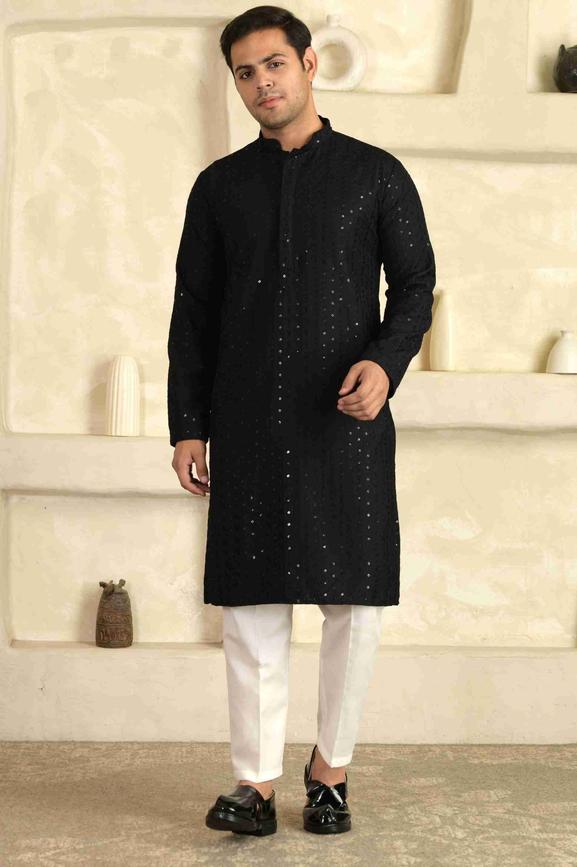 Step into celebration mode with this exquisitely embroidered kurta pajama for men — tailor-made for Diwali evenings, Navratri nights, and every festive moment in between. Impeccably woven with rich ja...