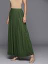 LIBAS महिलाओं के लिए एम्बेलिश्ड, एम्ब्रॉइडर्ड फ्लेयर्ड हरा स्कर्ट