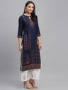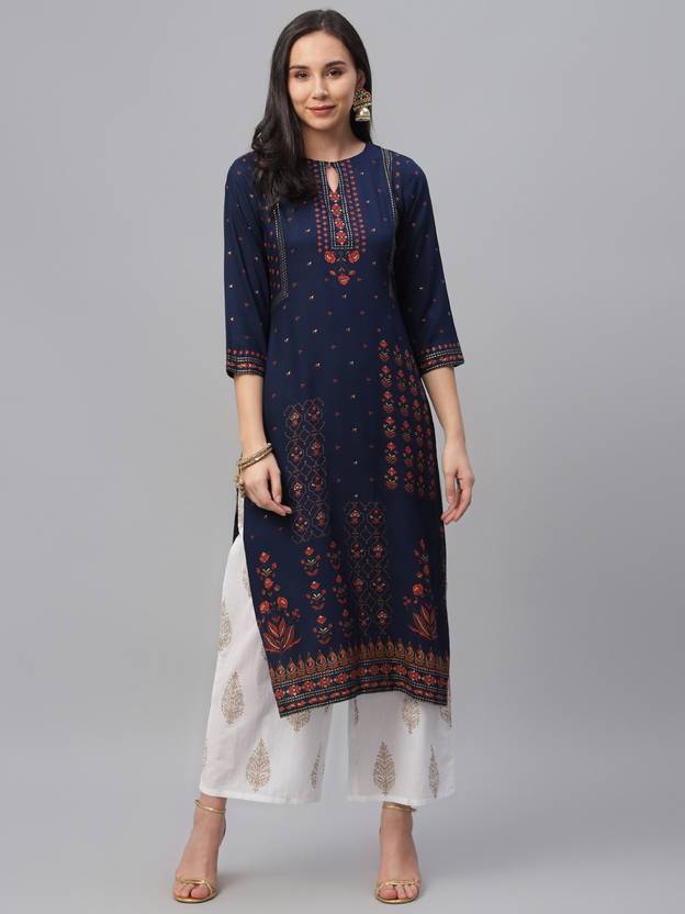 लिबास महिलाओं के लिए फ्लोरल प्रिंट स्ट्रेट कुर्ता (नीला)