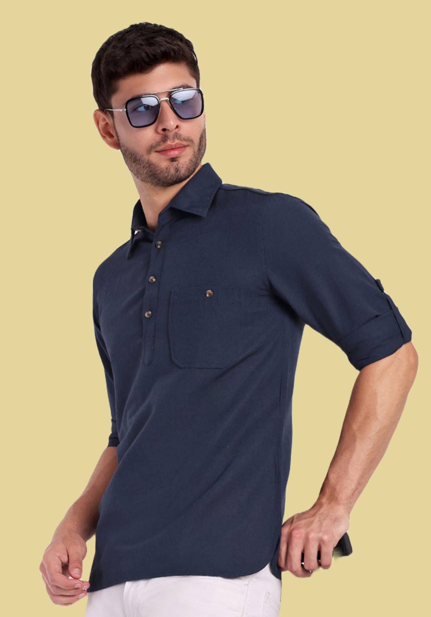 This solid cotton kurta presents a perfect blend of casual elegance and modern versatility, making it an ideal addition to any contemporary wardrobe. Designed for men who value both style and comfort, this kurta stands out with its minimalist aesthetics and smart design details.