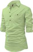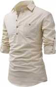 This solid cotton kurta presents a perfect blend of casual elegance and modern versatility, making it an ideal addition to any contemporary wardrobe. Designed for men who value both style and comfort, this kurta stands out with its minimalist aesthetics and smart design details.
