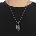 Lila Saint St Michael Archangel Medal Shield Pendant Mythological Catholic AngelGuard Stainless Steel Pendant Set