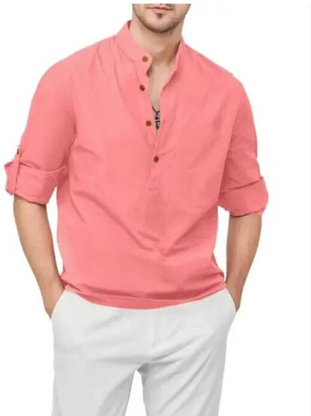 GUYS HUB Men Solid Cotton Blend Straight Kurta (Pink)