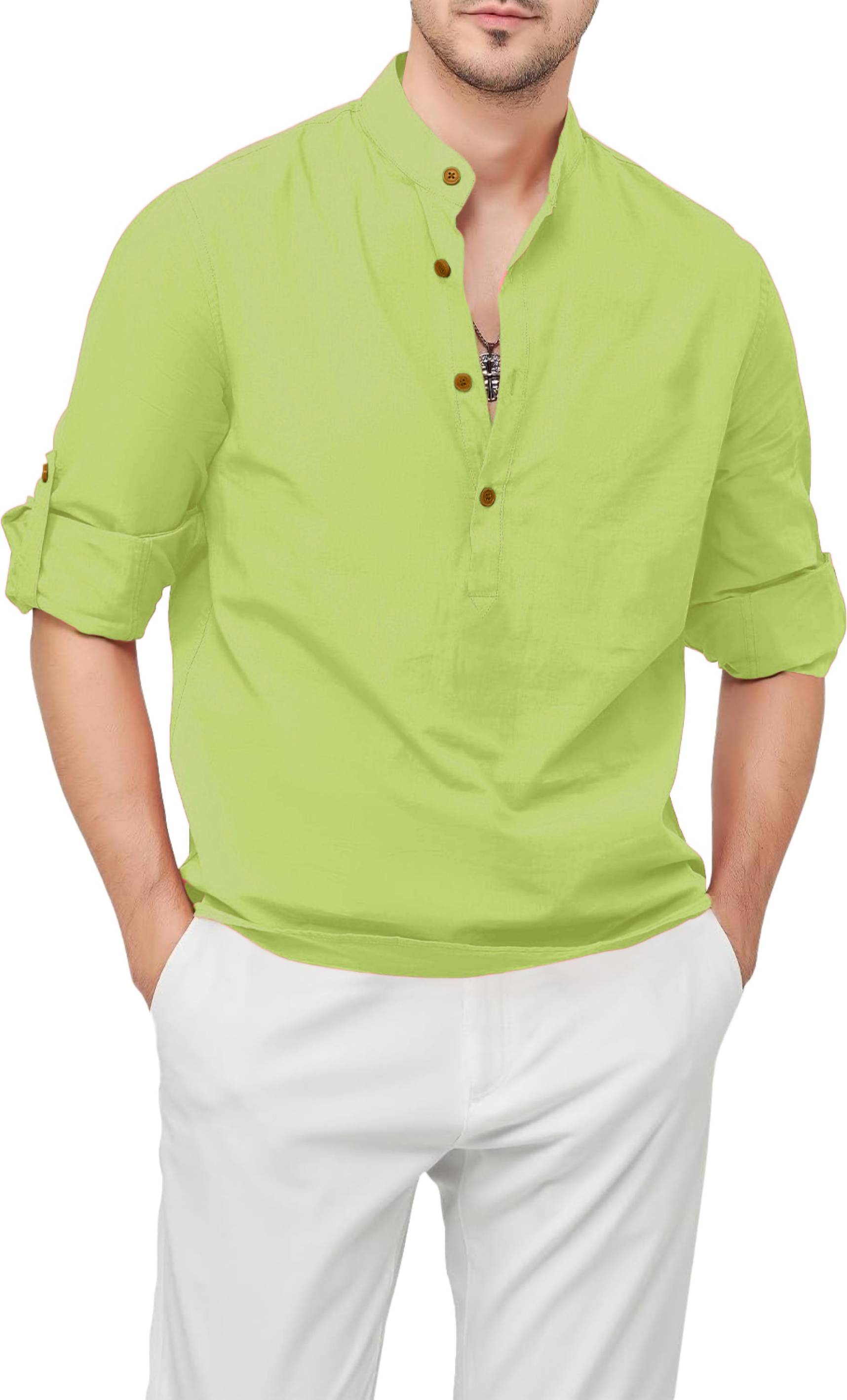 LIMRO Men Solid Straight Kurta (Light Green)