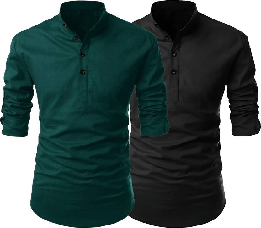 Pack of 2 Men Solid Cotton Blend Straight Kurta (Multicolor)