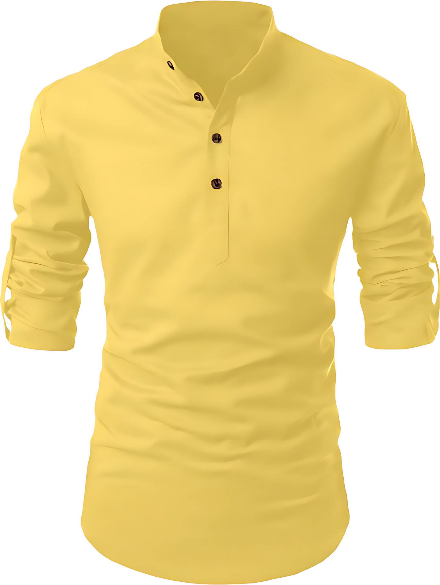 Men Solid Cotton Blend Straight Kurta (Yellow)